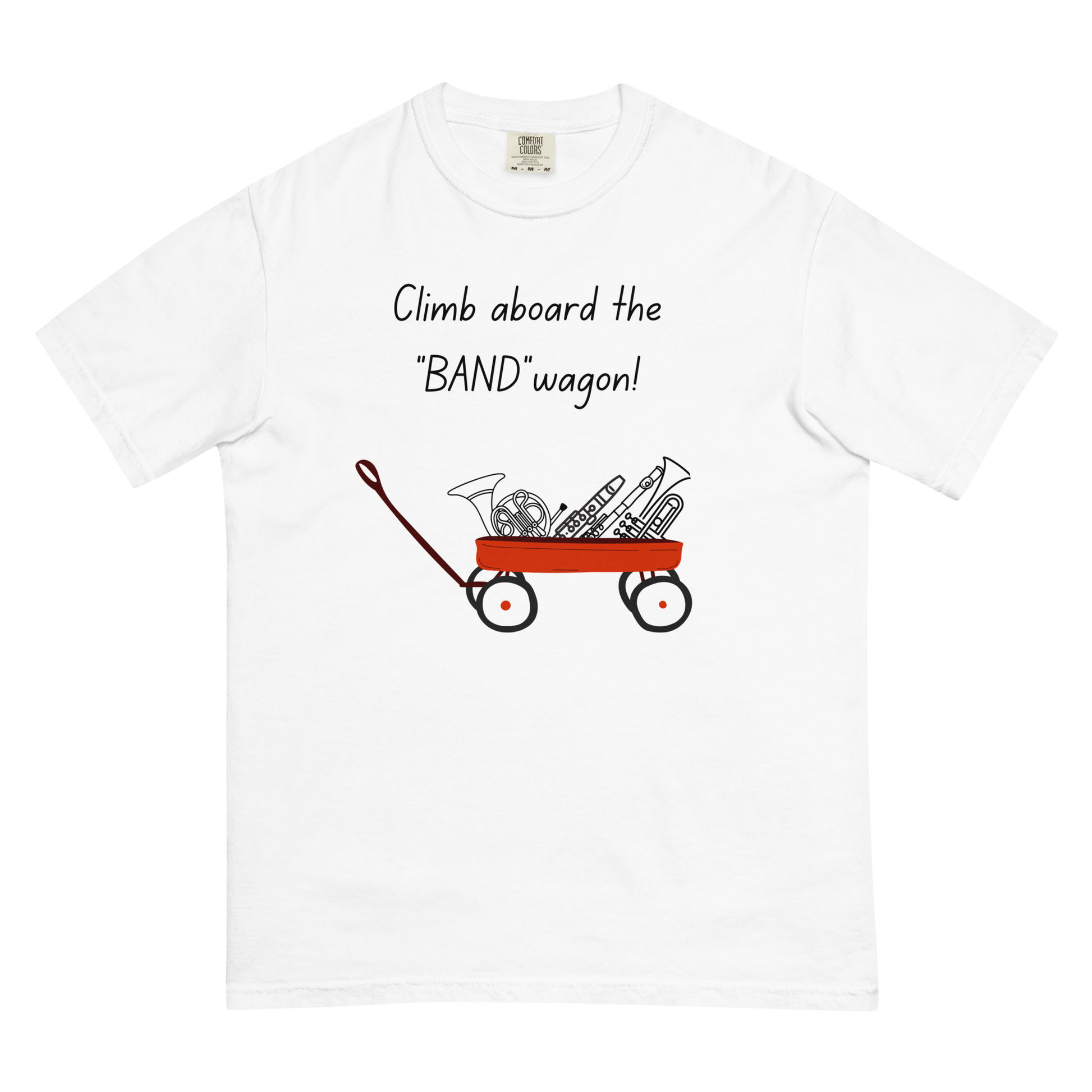 Featuring a clean sketch of a red wagon loaded with brass, woodwinds, and attitude, this is your invitation to join the movement — pun very much intended.